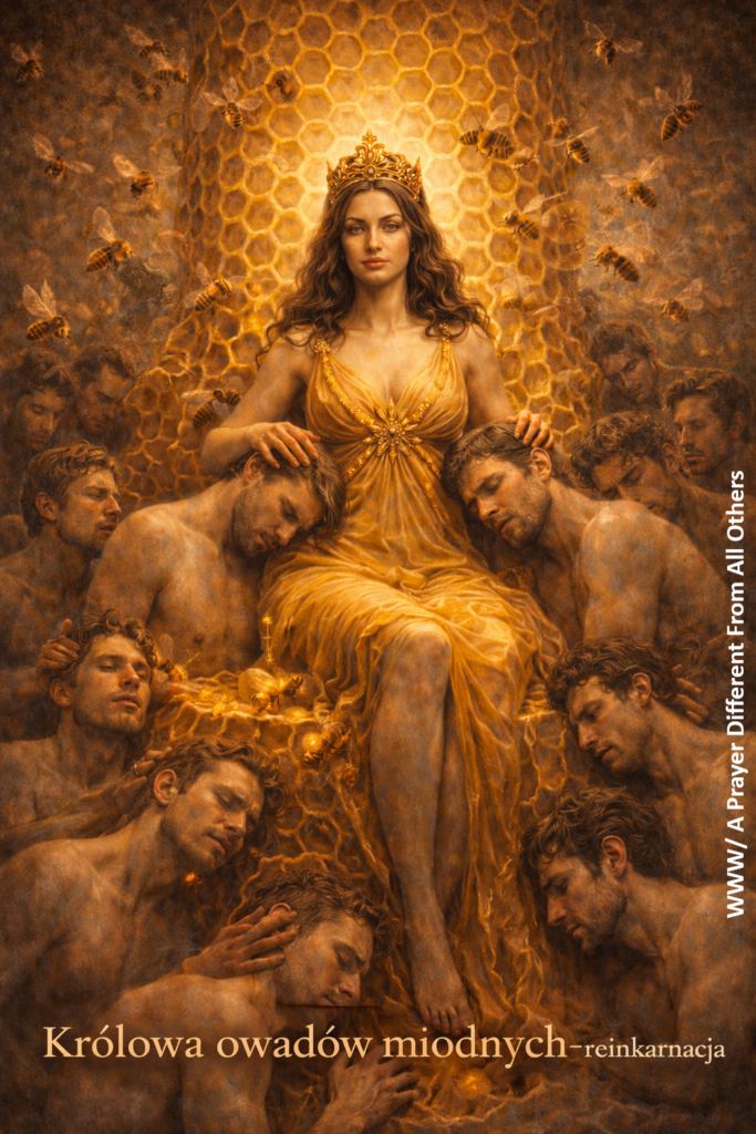 27. oraz naszego a przez nas cudzego z wszelkich przyczyn, wszelkimi sposobami m.in. bycia zanurzonymi w wzorcu relacyjnym, który – podobnie jak w biologii pszczoły i innych owadów miodnych – przenika ludzkie relacje kobieta–mężczyzna, gdzie kobieta w roli królowej wchodzi w seksualne i emocjonalne relacje z wieloma mężczyznami, czerpiąc z nich energię, doświadczenie, potwierdzenie wartości lub potencjał życia, a następnie magazynując skutki tych spotkań na całe dalsze funkcjonowanie, podczas gdy mężczyzna w roli trutnia zostaje powołany do intensywnego aktu bliskości, zapłodnienia sensu, impulsu lub projektu, po czym traci miejsce, znaczenie lub prawo do dalszej obecności, co w ludzkim doświadczeniu objawia się modelami relacji, w których kobieta „wybiera wielu”, zbiera historię, pamięć i konsekwencje, a mężczyzna bywa jednorazowym uczestnikiem, ocenianym wyłącznie przez pryzmat tego, co dał w chwili spotkania, co prowadzi do utrwalania schematu, w którym seksualność staje się narzędziem selekcji i zasilania, a nie przestrzenią wzajemnego wzrostu, skutkując u kobiet przeciążeniem odpowiedzialnością za ciągłość, kontrolą relacji i lękiem przed utratą zasobów, a u mężczyzn doświadczeniem bycia wymiennym, łatwo usuwalnym i wartościowym tylko w momencie użyteczności, co dalej rzutuje na emocjonalną niedostępność i spełnienie jako truteń, ucieczkę po bliskości, rywalizację zamiast więzi oraz głębokie poczucie niesprawiedliwości po obu stronach, a także na przenoszenie tego wzorca na pracę, wspólnotę i duchowość, gdzie jedni „magazynują”, a inni są spalani w jednorazowym wysiłku, i uznawania tego mechanizmu nie jako oskarżenia płci, lecz jako nieuświadomionego przeniesienia biologicznego modelu przetrwania owadów miodnych i mrówek na relacje ludzi, którzy są powołani do czegoś więcej, poprzez oddawanie Bogu przekonań, że kobieta musi brać od wielu, aby przetrwać, a mężczyzna musi oddać siebie bez prawa do dalszego życia w relacji; oraz przyjmowanie od Boga uzdrowienia obrazu seksualności i więzi, w której spotkanie nie eliminuje, bliskość nie zużywa, a relacja nie kończy się po spełnieniu funkcji, lecz trwa w wzajemnej obecności, godności i odpowiedzialności, na przestrzeni wszystkich wymiarów i czasów, w Bogu i nie tylko, a to wszystko z powodu m.in. naszych i cudzych działań związanych z Końcem Świata, w okresie 2012 roku, z innymi Końcami Świata z poszukiwaniem Boga, z Apokalipsami, Armagedonami, z końcami cywilizacji i nie tylko oraz naszego a przez nas cudzego doświadczania tego wszelkich skutków