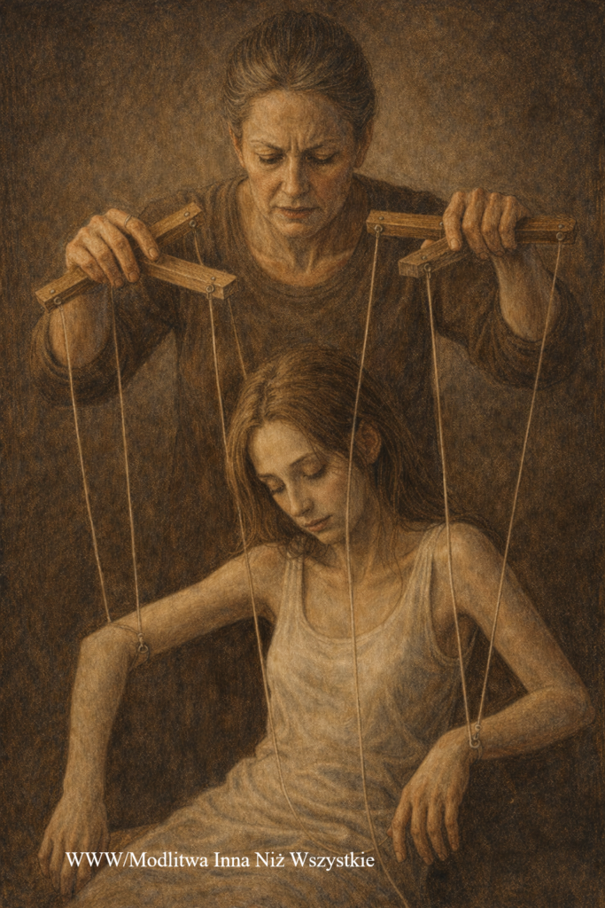 24. oraz naszego a przez nas cudzego z wszelkich przyczyn, wszelkimi sposobami m.in. bycia kontrolowanymi przez rozmaite matki a tym przez obecną matkę (i jej duszę)………., przez prawie całe moje życie, prawie do końca jej życia, niezależnie od stanu zdrowia, pogody, pory dnia i nocy; odpowiednio bycia kontrolowanymi przez osobę matki, która jest złośliwa, (wymień tu jej problemy fizyczne i umysłowe……..), nie kontrolująca siebie, ani niczego, ale decydująca o prawie wszystkim; odpowiednio bycia kontrolowanymi przez rozmaite matki a tym przez obecną matkę ( i jej duszę)………… które mają ostatnie zdanie w każdej sprawie, do których należy ostateczna decyzja, dotycząca również moich i naszych działań, pomysłów; odpowiednio trafiania w ręce matek spragnionych wszelkiej władzy nade mną i nad innymi, patrzących z pogardą na wszystkich bliskich i na tych którzy są daleko, chętnych, aby je noszono m.in. na rękach oraz w lektyce, chętnych głównie do wylegiwania się, chętnych w ramach sprzeciwów do sabotowania, niszczenia mnie, mojego taty, rodziny i innych wedle ich woli, oraz chętnych, aby na zawołanie obsługiwała je liczna grupa niewolników, służących, mąż, kochanek, ja sam i nie tylko, a to wszystko w zależności i odpowiednio w niezależności od m.in. woli, wytycznych, opinii, działań, poleceń, postanowień, podpowiedzi, inspiracji, łask, szczodrości i odpowiednio ich braku ze strony m.in. naszych a przez nas cudzych wszelkich bałwochwalczych postaci, czynów, intencji, zamysłów, wzorców, nawyków oraz ze strony tych, co modlą się do nas jak do bogów, do bóstw, do mistrzów, Świętych, do oświeconych, do istot astralnych; oraz ze strony traktujących nas, lub innych jako pośredników do Boga, pośredników do wszelkich bóstw, bogiń; oraz ze strony czczących nas, wychwalających nas, wielbiących nas; oraz ze strony tych, którzy modlą się za nas do bóstw, bogiń, kosmitów w naszym imieniu, w naszych sprawach, dla dobra naszego i odpowiednio ze strony tych, którzy w modlitwach nam złorzeczą, rzucają klątwy i uroki, którzy chcą się mścić na wszelkie sposoby i nie tylko oraz naszego a przez nas cudzego doświadczania tego wszelkich skutków