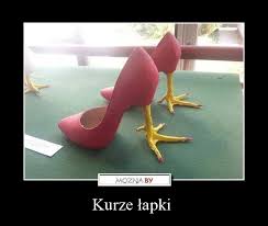 Objaw ten dotyka głównie kobiet, z racji słabszych genetyczne wiązadeł stóp. Nie ukrywam tego, że poprzez wieloletnią pracę z modlitwami skierowanymi do Boga widzę ludzkie Dusze, oraz wzorce karmicznych uwikłań. Latem 2013 roku pojawił się wysyp kobiet, których Dusze miały stopy ptasie. Stopy typowe, z kurzymi lub wronimi palcami. Ilustracja druga jest nieco przewrotna, bo obcasy butów- kurze palce, skierowane są w tył, dla zachowania równowagi kobiety, która by je nosić chciała. Buty te, poza wszystkim, są bardzo kobiece i wiele Dusz jest nimi zainteresowanych.