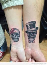 Osoby mające min na odzieży, na skórze wizerunki czaszek i nie tylko.